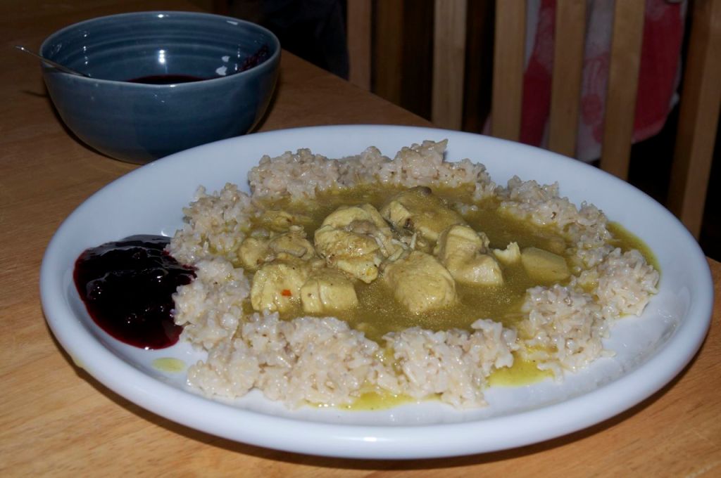 - Serve the curry with boiled rice and a side dish of black currant jam.