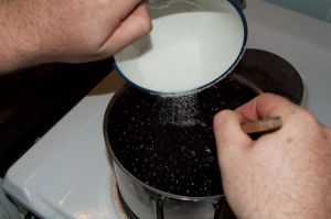 In a saucepan I cooked the berries with a small amount of water until the fruit had become soft, a wonderful fruity fragrance filled the kitchen. After about ten minutes of slowly cooking the fruit I gradually added 500g of sugar, made from Finnish grown sugar beet, unlike Ireland they saved their sugar beet industry from EU eradication. When all the sugar was added and dissolved, I turned up the heat and the jam boiled hard. I continued cooking the jam, stirring occasionally until the jam was not running off the wooden spoon.