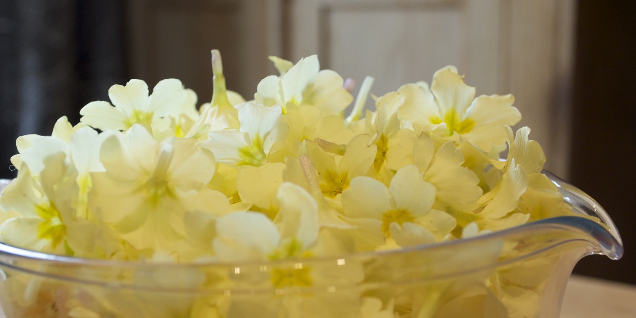 - 1 litre of primrose flowers. When foraging for wild food, do not collect flowers, leaves or fruits from beside busy roads, or areas where they are exposed to possible pollution.