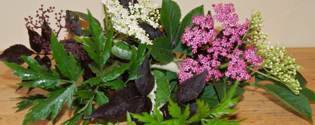There are some really good garden varieties of the common elder. The dark leaved S. nigra ‘Black Beauty’ not only has dark seductive divided leaves but also bears beautiful pink flowers. Just like the wild one, it is vigorous and tough. If elders are pruned hard in the spring they re-grow with increased vigour and produce enlarged foliage, but flowers are absent. Dark leaved cultivars can be treated in this manner to produce excellent foliage plants. They provide interest to a herbaceous or mixed border. The finer leaved S. nigra ‘Black Lace’ is excellent when treated this way.