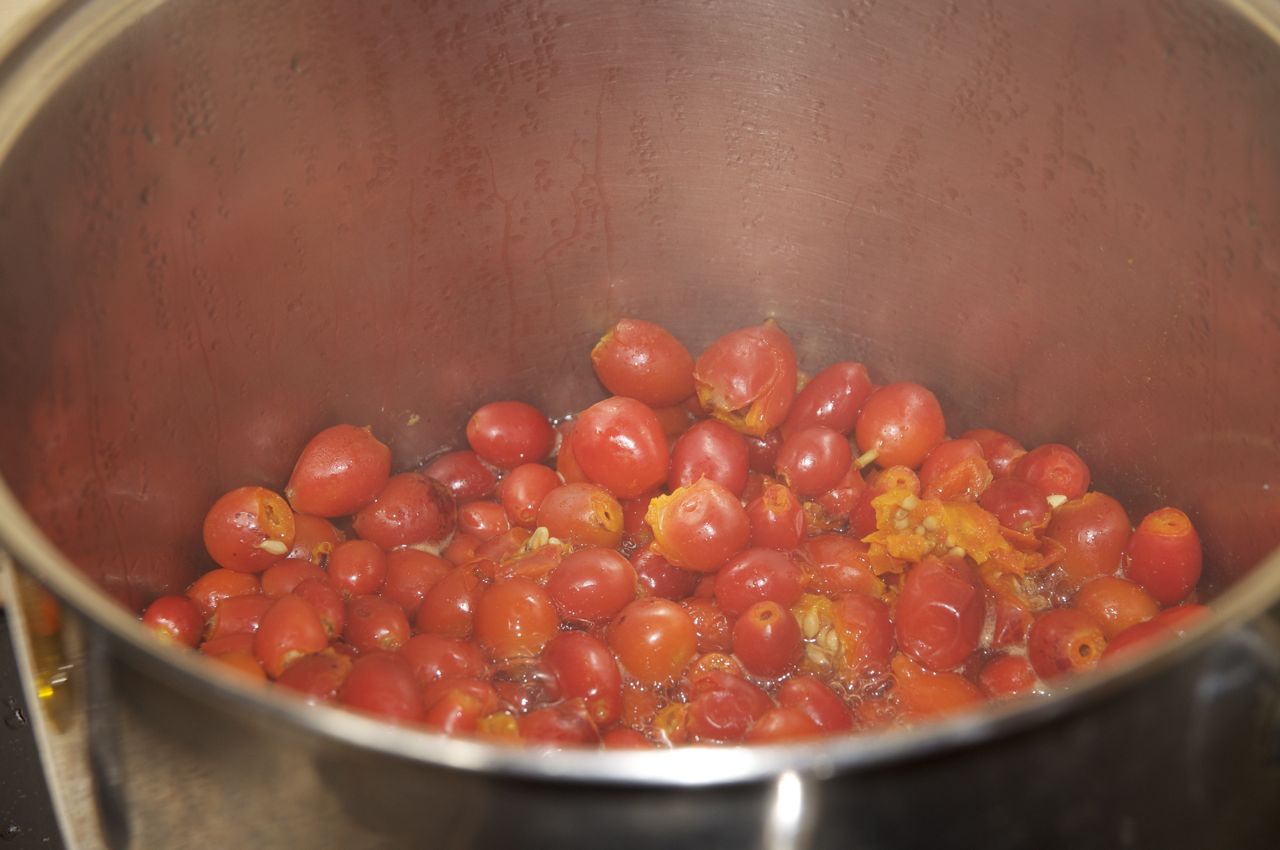 7. Continue cooking for about 20 minutes until the jam has thickened.