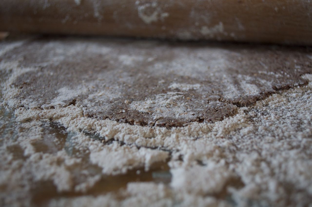 1. Sprinkle some flour on a wooden or glass surface, and then roll the pastty very thin.