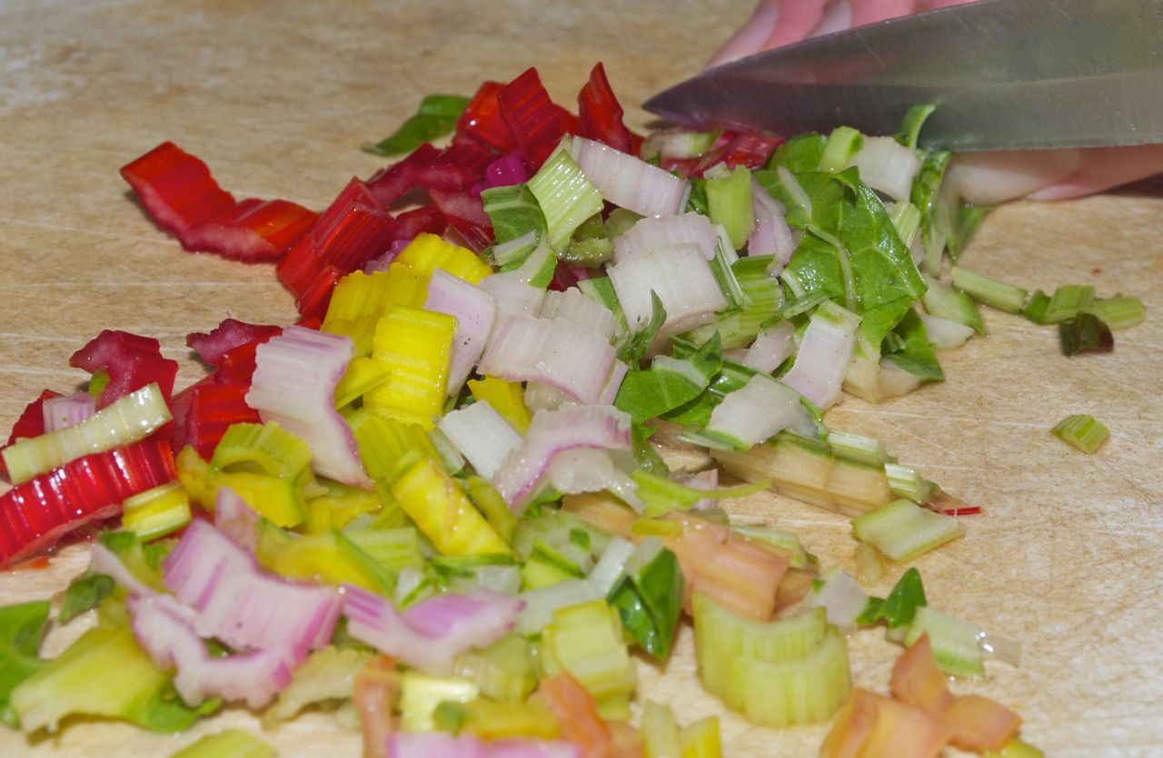 - 3-4 cups of Swiss Chard stems