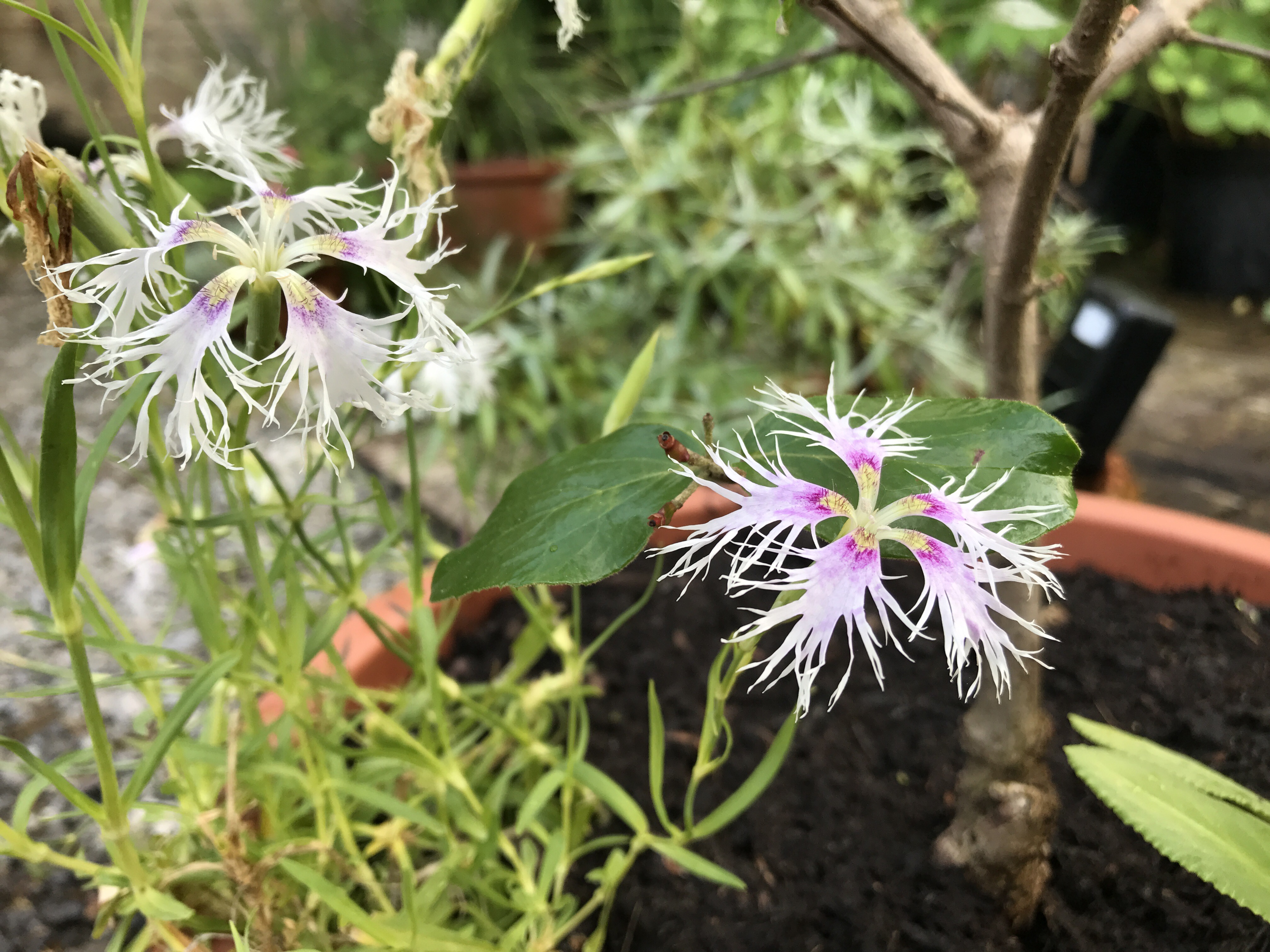 Over the last few years we have been constantly adding new plants and pots to our collection. Where once we had an acre of garden to tend, now its the 180 pots, or there about, and the plants at the base of the wall that is our garden. We rent an apartment, an old converted oat loft on a stud farm. When we first moved in, there was little in the way of botanical interest, but it did not take long for us to make an impact. Potted specimens from our old garden were laid in position around two small wooden decks that we built. Then we tried out some plants in the gravel at the base of the wall.