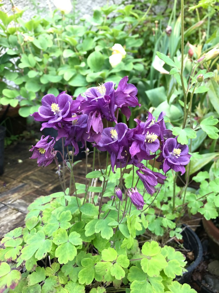 It has been a long day, and a long drive home, but the sun was shining and the air was warm. After having something to eat we wandered downstairs to have a look at the plants. Our collection of pots and the narrow strip at the base of a wall that we have planted gets us out for a bit of air, and we enjoy the beauty of the blooms and seeing bumble bees buzzing about.
