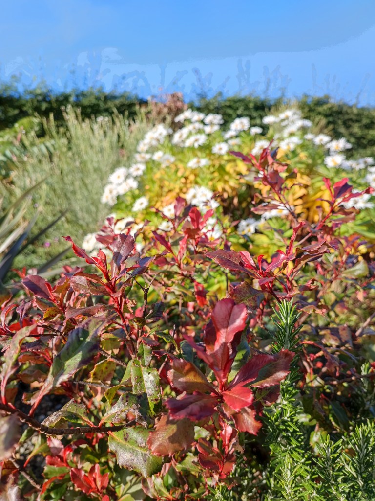 Nipponanthemum nipponicum, also known as the Nippon Daisy or Montauk Daisy, is a stunning perennial plant native to Japan. With its bright white, daisy-like flowers and glossy, dark green foliage, this plant adds a touch of elegance to any garden. One of its most remarkable features is its late-season bloom, providing a burst of color when most other plants have faded. The Nippon Daisy thrives in full sun and well-drained soil, making it an excellent choice for landscaping or as a border plant. Its ability to attract butterflies and bees adds an extra ecological benefit to your garden. I have 3 plants, their domed growth habit adds strong form to the area throughout the summer and helps bring three different areas together visually, using forms to help harmonise the planting schemes.