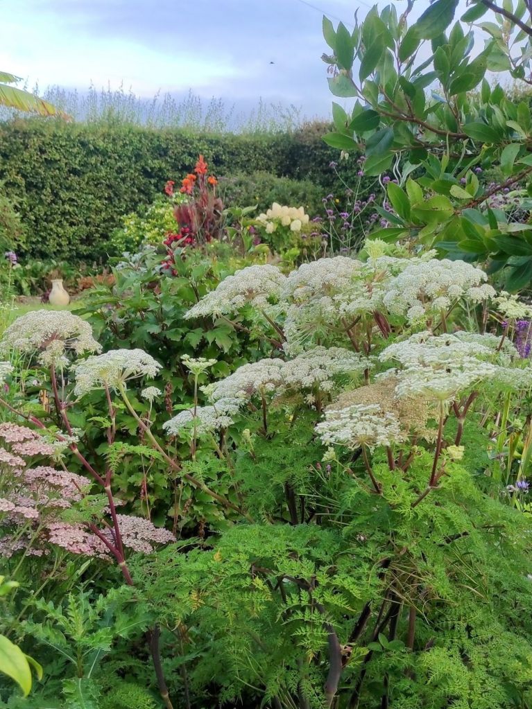 August is brimming with favourite plants, lots of big bright colours, flowers and bold foliage abound. Then in the middle of the month The Patio Garden is graced by the lacy white blooms of understated elegance of Selinum wallichianum. this cow parsley relative has a natural understated beauty, a calming presence that is beguiling.