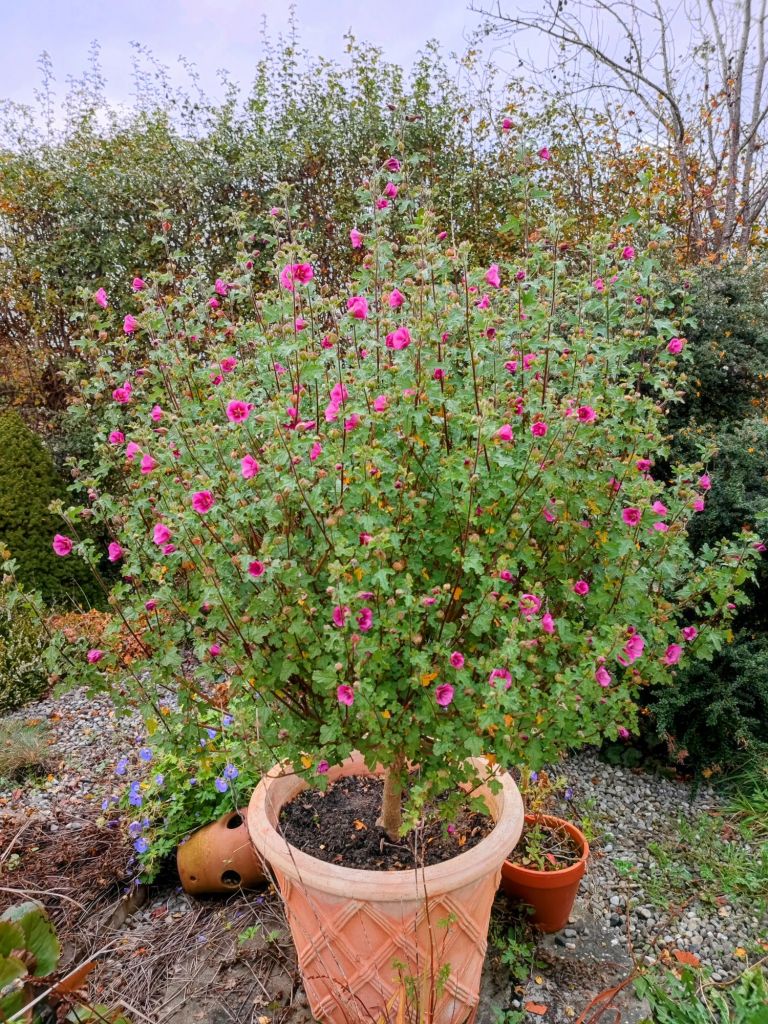 A shrub for all seasons, Anisondontea capensis is rarely without some flower. At any time during the year it has the pink cup shaped flowers. A strong grower, evergreen foliage and perfectly happy on a big pot. This plant could be a favourite any month of the year.