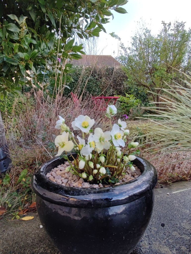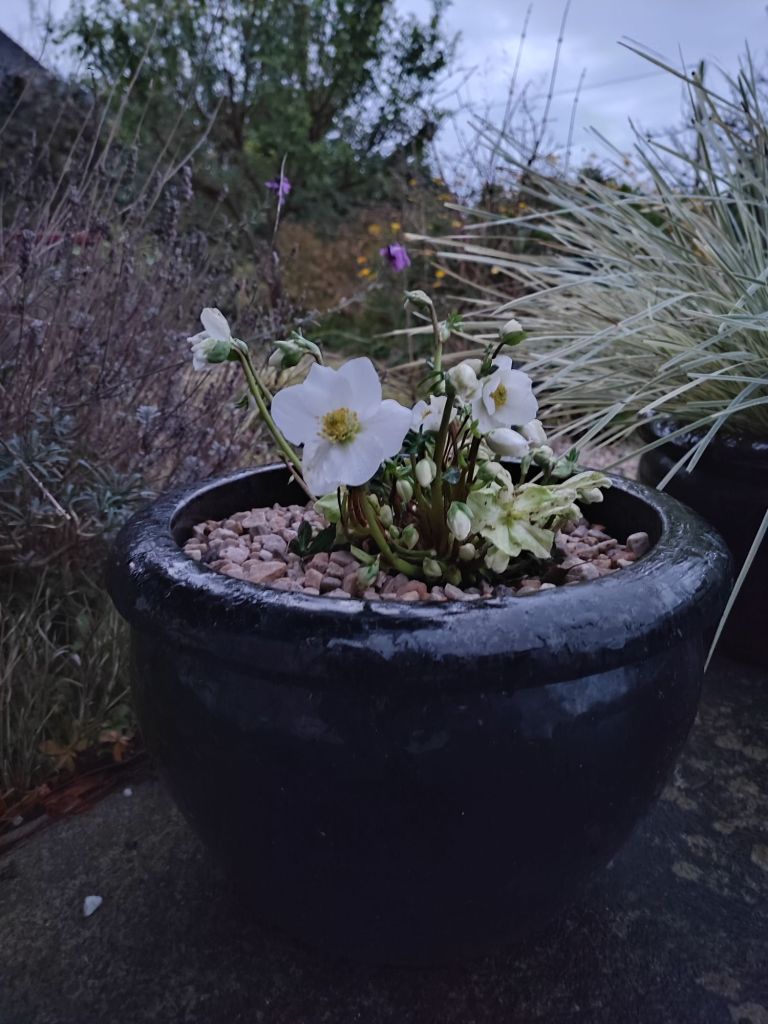 Over the last few Helleborus niger ‘Christmas Carol’ on it’s own in a black ceramic pot has been a winter star.