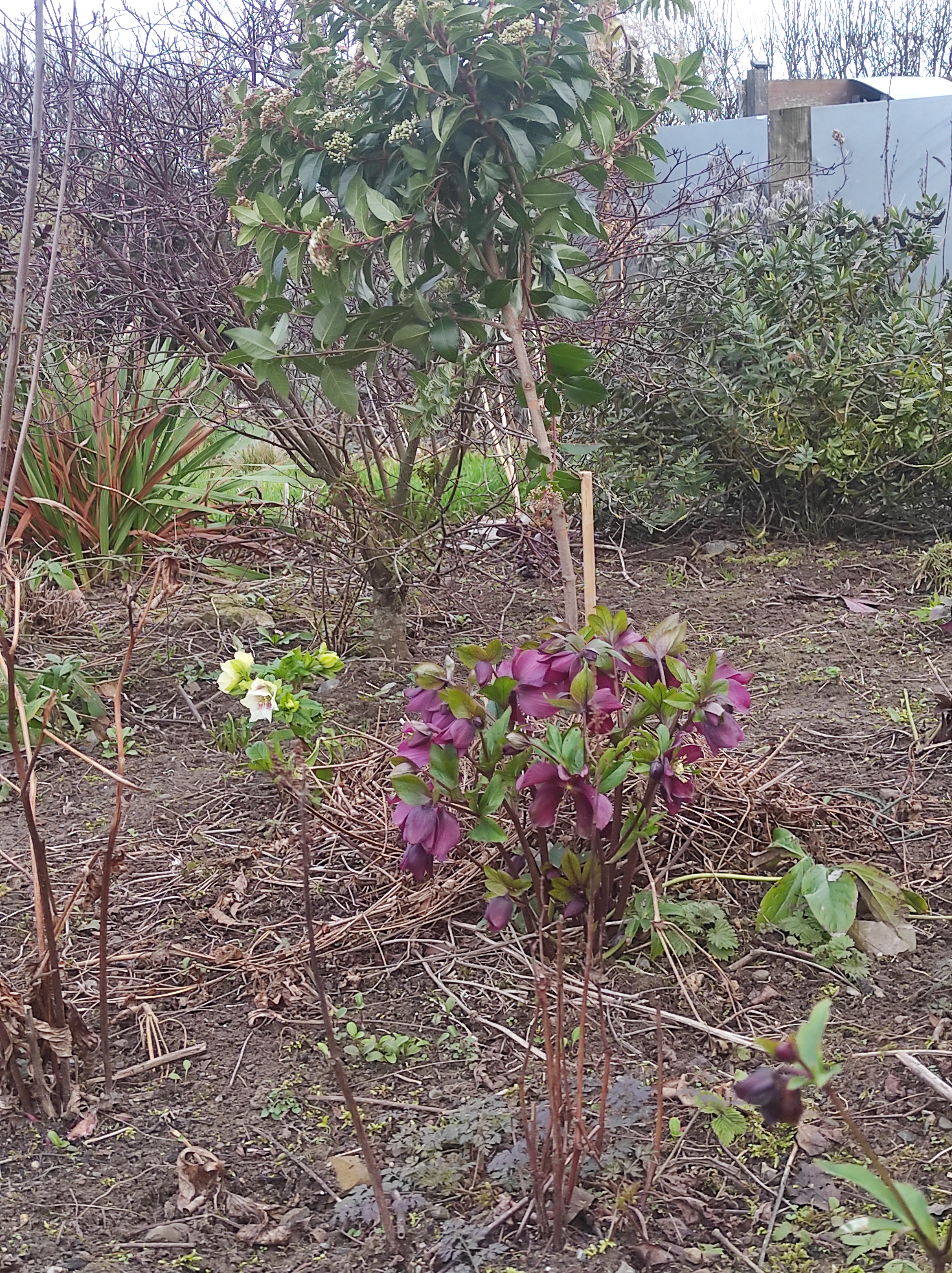 I plant my hellebores futher back to the centre of the borders in The Patio Garden, and not at the front of the border. Although they are of short stature, i like to see them peeping up through the border, this leads the ey into the border rather than lingering on the perimeter.