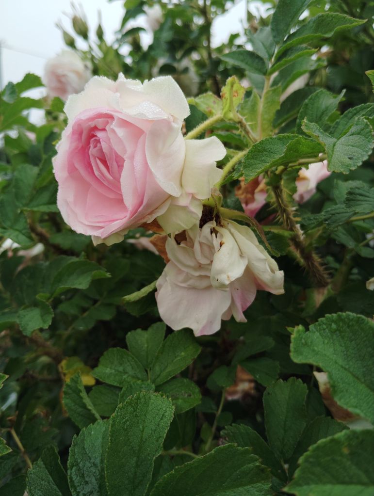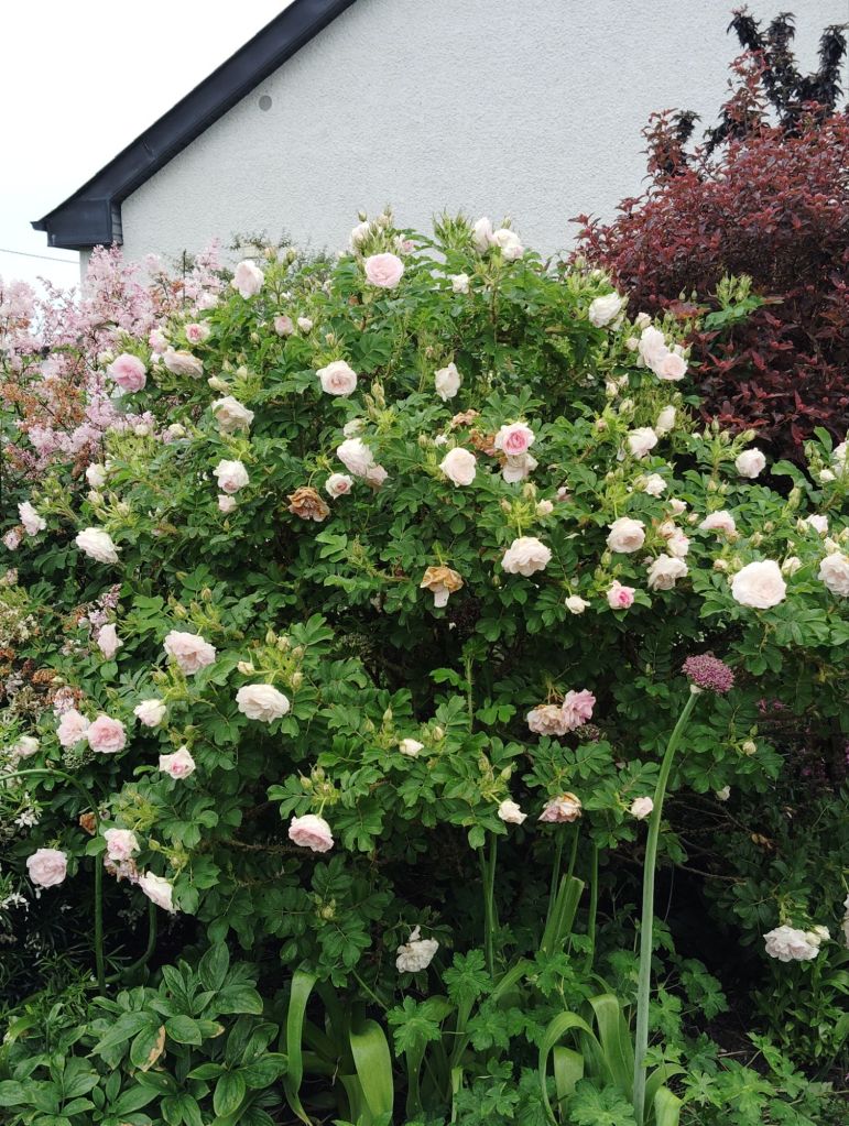 Walking around the garden two evenings ago, the weather was mild and calm. The scent from Rosa ‘Ritausma’ was strong and sweet.