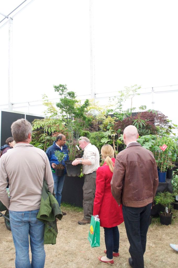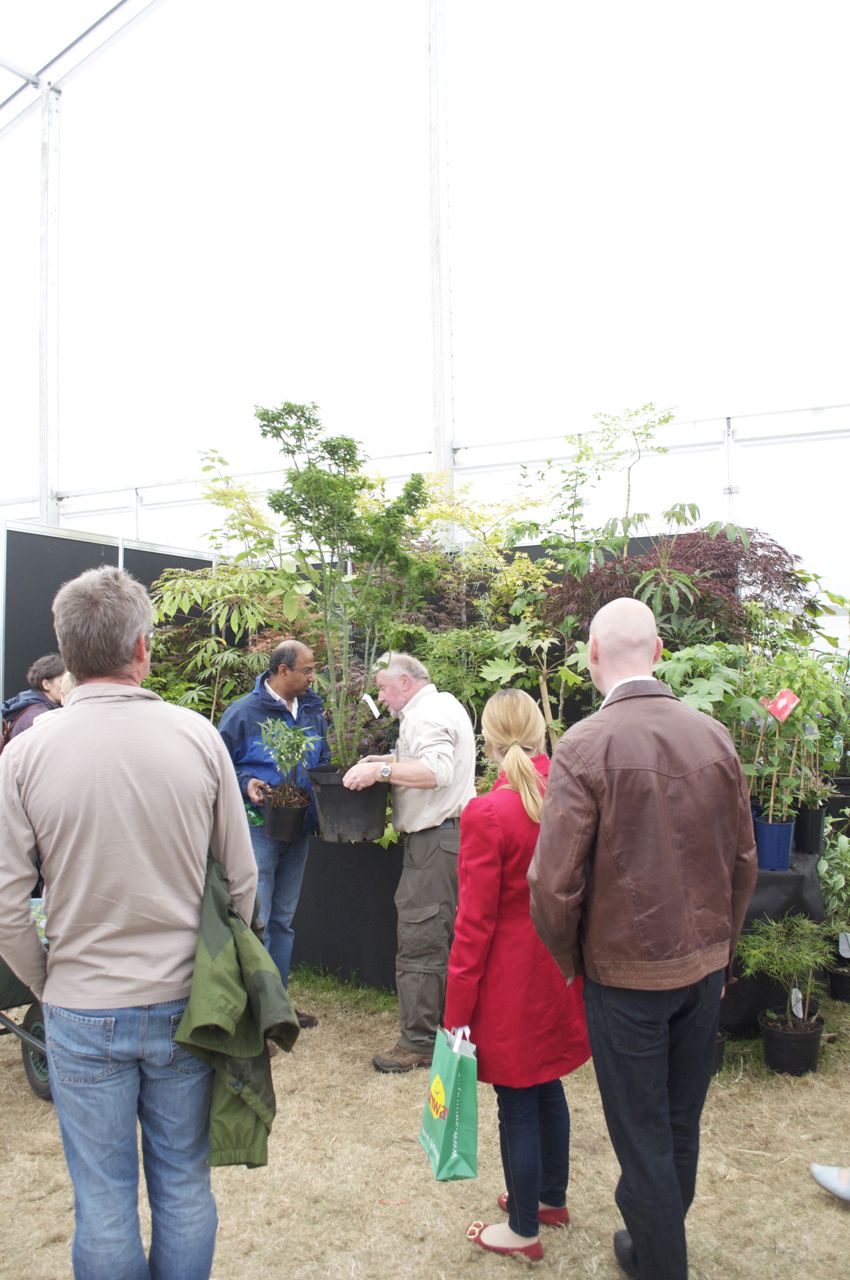 Hanna helped Philip Bankhead of Pennisula Primulas. This is an annual arrangement ever since the first Bloom when Philip innocently said “help yourself’ t and his invitation to the public to pick their desired primulas and queue to pay for them was misunderstood. Now Hanna marshals the crowds with Finnish organisation and a teacher’s command. An orderly queue is formed around his stand as customers choose their plants, Philip packs them, all are paid for; everybody’s happy. Around every nursery stand their is a type of bedlam, as foxgloves fly and lupins leap into grateful arms. Japanese maples move through the air, concealing people in a cloud of purple foliage that waves from side to side through the floral marquee. Smiles are on the faces of happy plant buyers.