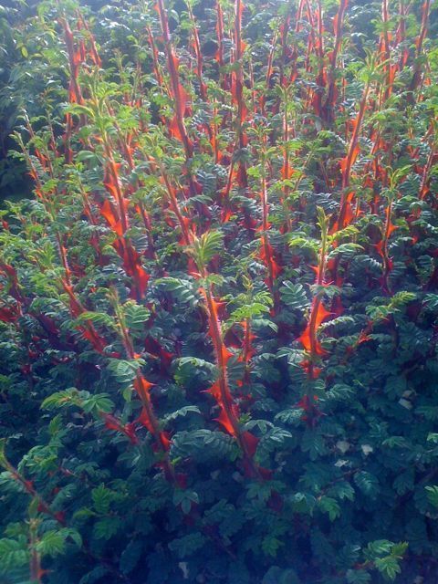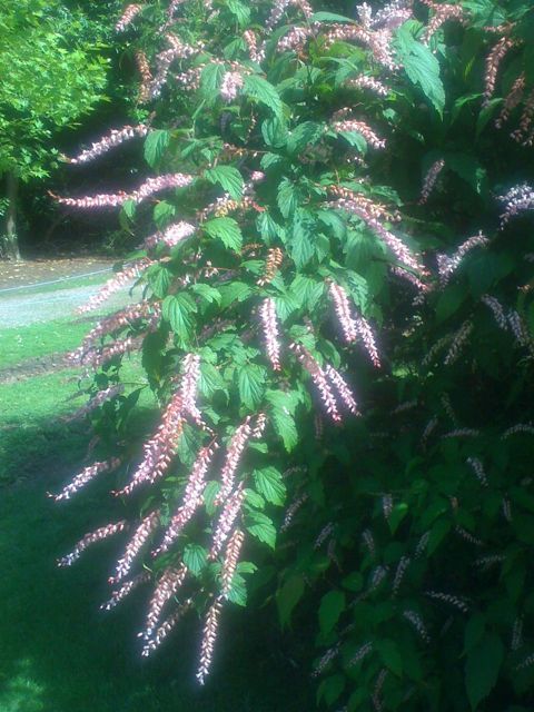 Every few centetres there grows an unusual plant. Shefflera taiwanianna, Arisames consaguineum and Tetrapanax papyrifer all share the same few metres space. In one third of an acre, Hester has condensed an arboretum and five continents of flora.