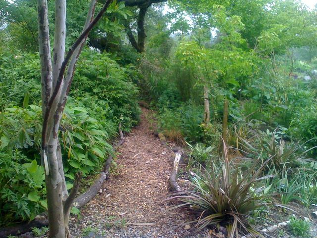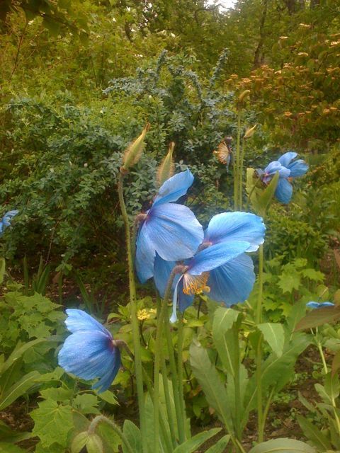 Jimi led us through the woodland garden, situated in a seventh century ringfort. Blue poppies, Meconopsis bectonicifolia, beautifully displayed against a background of glaucous foliage of Beberis temolaica, gathered much praise.