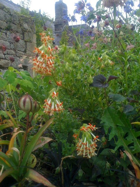 Our group arrived as the cloud hung low and a breeze blew down the hill. Gerry our driver parked the coach by the allotments and we walked up the road to the gardens. As soon as the first people entered they stopped to examine plants and ask the names, it is apparently an international condition, this plant obsession.