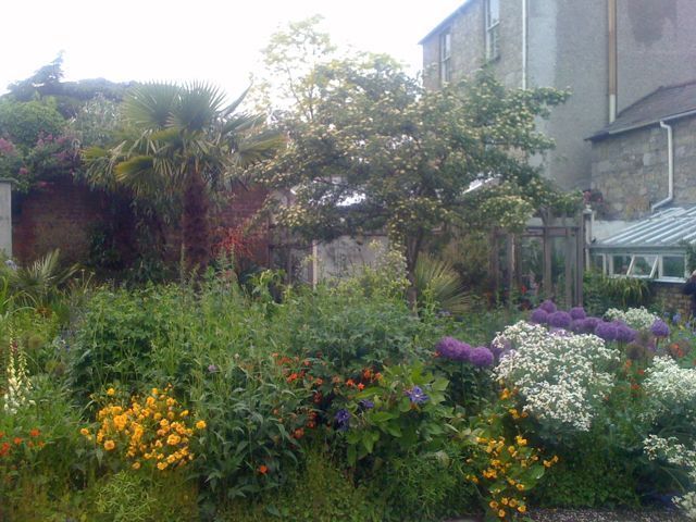 So far it has been dry. We met all the group at Dublin airport and then went straight to the Dillon Garden in Ranelagh. Val Dillon welcomed and entertained us with his humourous stories and then he put the kettle on for tea and coffee. We all went to the garden.