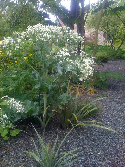Crambe maritima attracted a lot of interest with the visitors. Many admiring it’s numerous flowers and sniffing it’s sweet honey scent. It is also grown as a vegetable. When grown for eating it is covered in spring to exclude light and the new growths harvested. I have it in the garden at home but have never eaten it, i will try it next year. Helen says it is as good as asparagus.