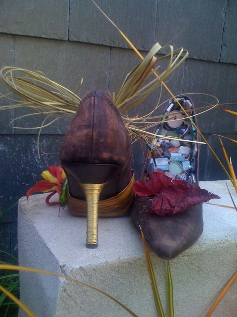 Dillon Garden from steps at back of house; Val Dillon tells us his entertaining stories; the empty hen house; Crambe maratima (Seakale) flowers; Allium ‘Globe Master’ (those finished flowering in the foreground are A. ‘Purple Sensation’); some of the group enjoying the garden, viewed from drawing room window.