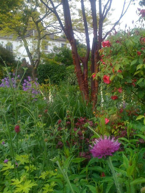 In the garden Helen Dillon greeted us warmly and we all wandered through the garden. Helen enthusiastically identified plants and answered questions. She also had some sad and bad news to share. Reginald, their daschound, a familiar character to visitors in the past has passed away. The other misfortune concerns the hens, all were killed a few weeks ago by a fox.